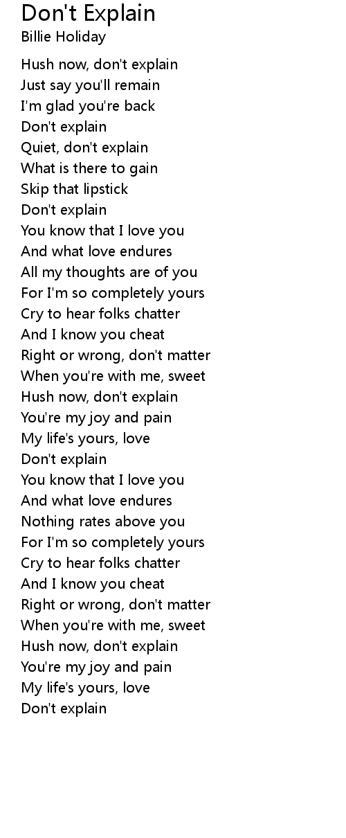 Hush now, don't explain |