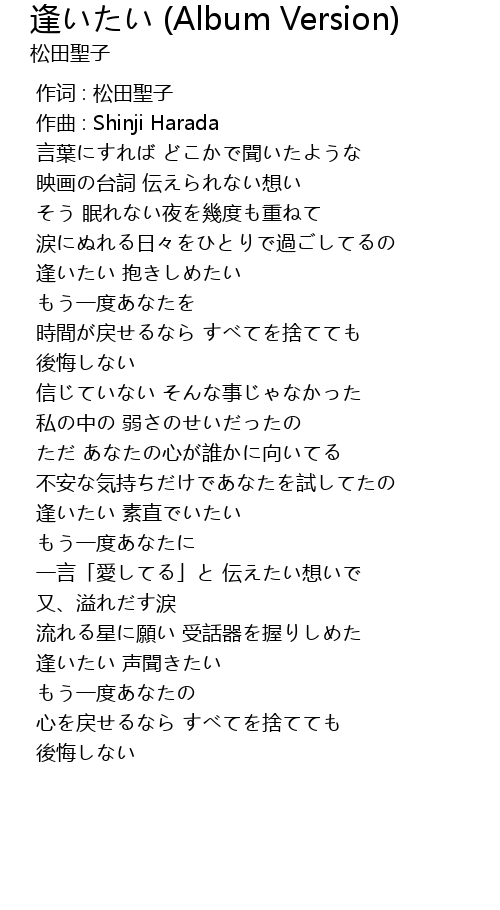 | [02:51.515] | 逢いたい 素直でいたい |