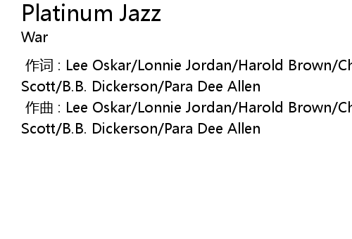 | [00:00.000] | 作曲 : Lee Oskar/Lonnie Jordan/Harold Brown/Charles Miller/Howard Scott/B.B. Dickerson/Para Dee Allen |