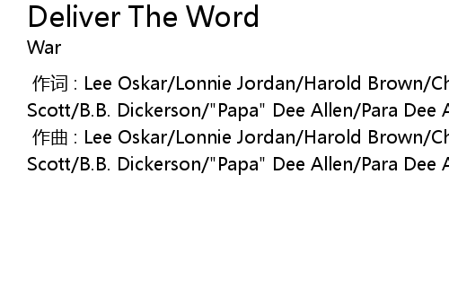 | [00:00.000] | zuo ci : Lee Oskar Lonnie Jordan Harold Brown Charles Miller Howard Scott B. B. Dickerson" Papa" Dee Allen Para Dee Allen |