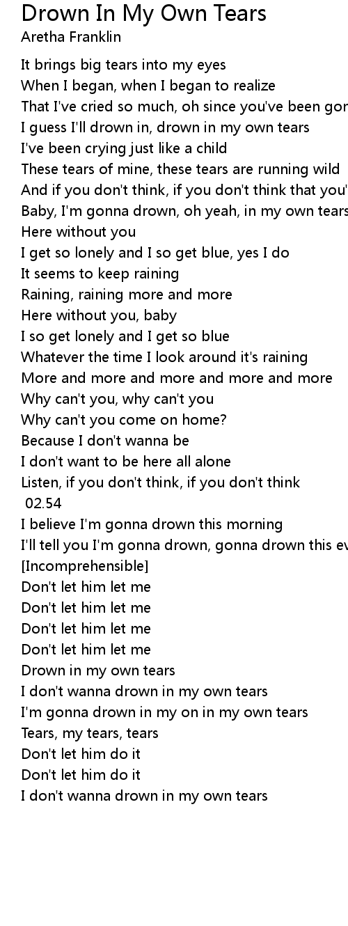 Baby, I'm gonna drown, oh yeah, in my own tears |