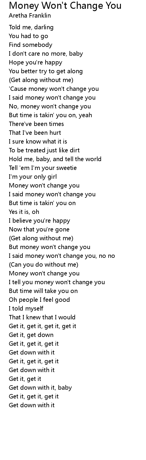 'Cause money won't change you |