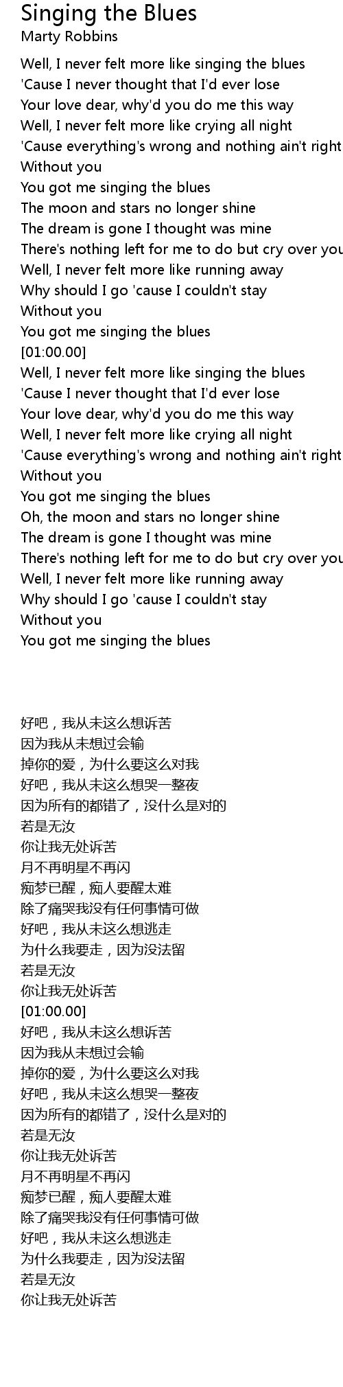 Well, I never felt more like singing the blues |