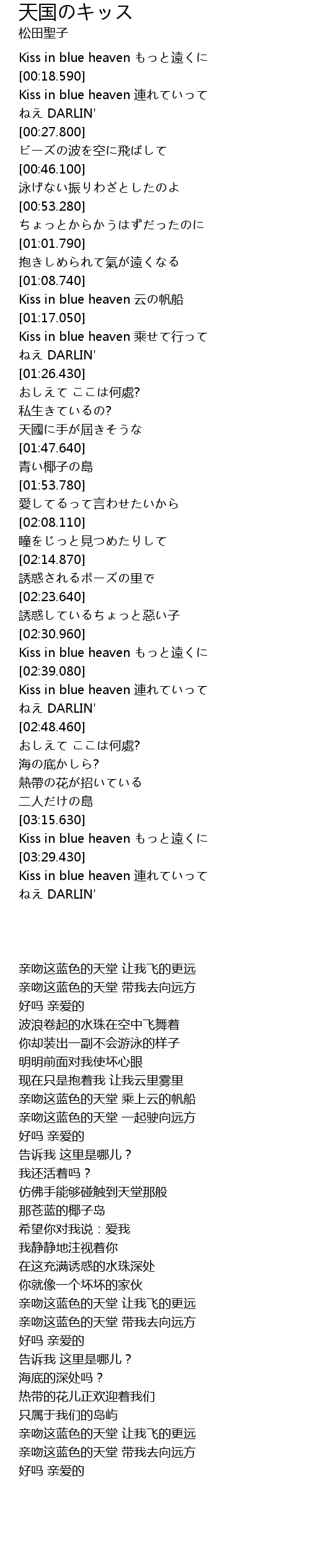 | [03:23.020] | Kiss in blue heaven yuǎn |