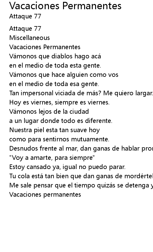 | Song | Vacaciones Permanentes |
