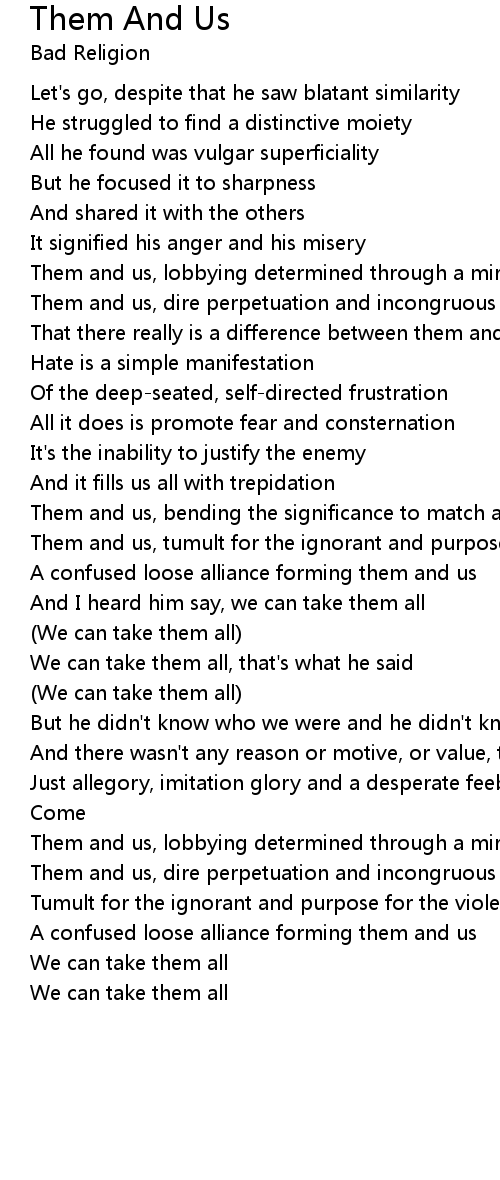 Them and us, tumult for the ignorant and purpose for the violence |