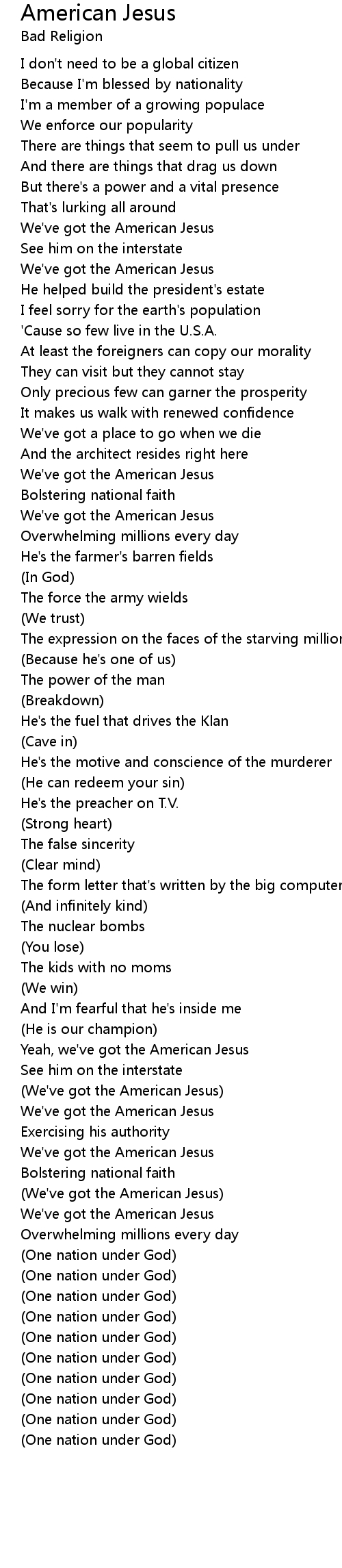(We've got the American Jesus) |