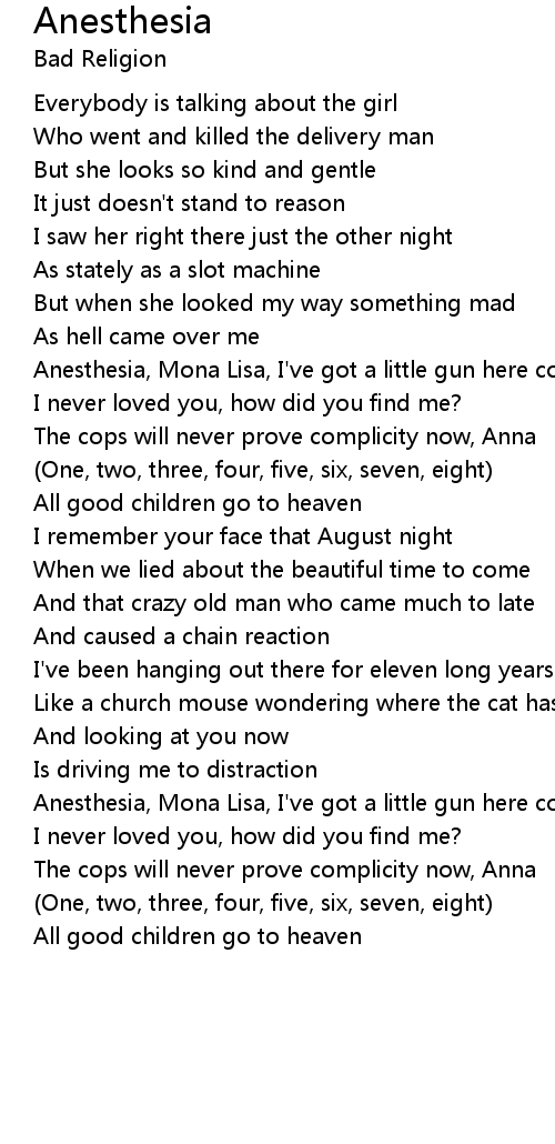 Anesthesia, Mona Lisa, I've got a little gun here comes oblivion |
