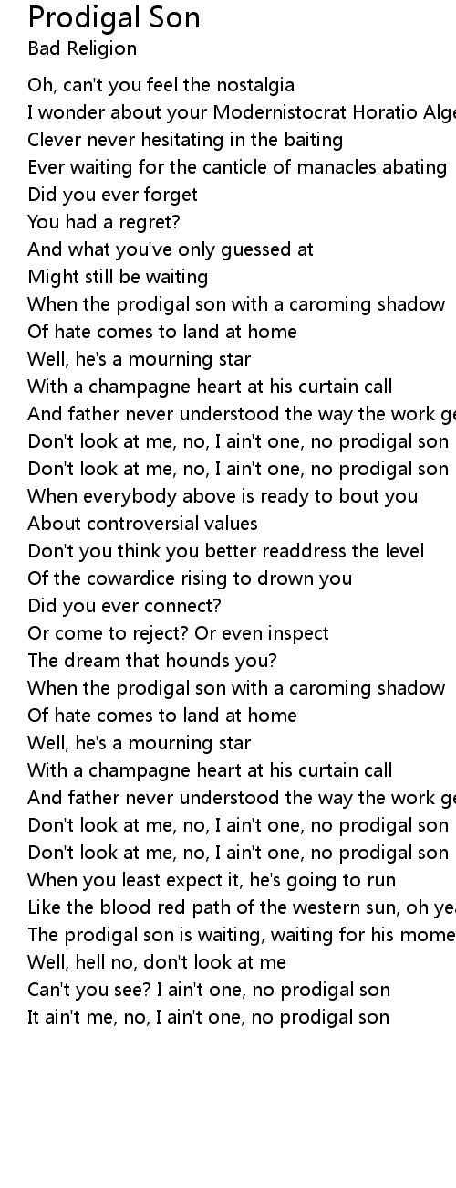 Don't look at me, no, I ain't one, no prodigal son |