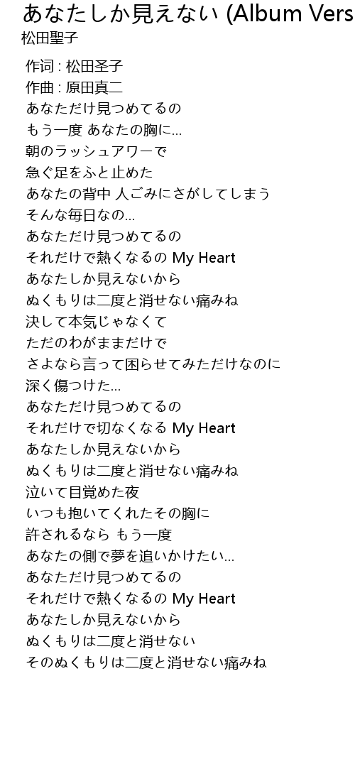 | [04:09.758] | それだけで熱くなるの My Heart |