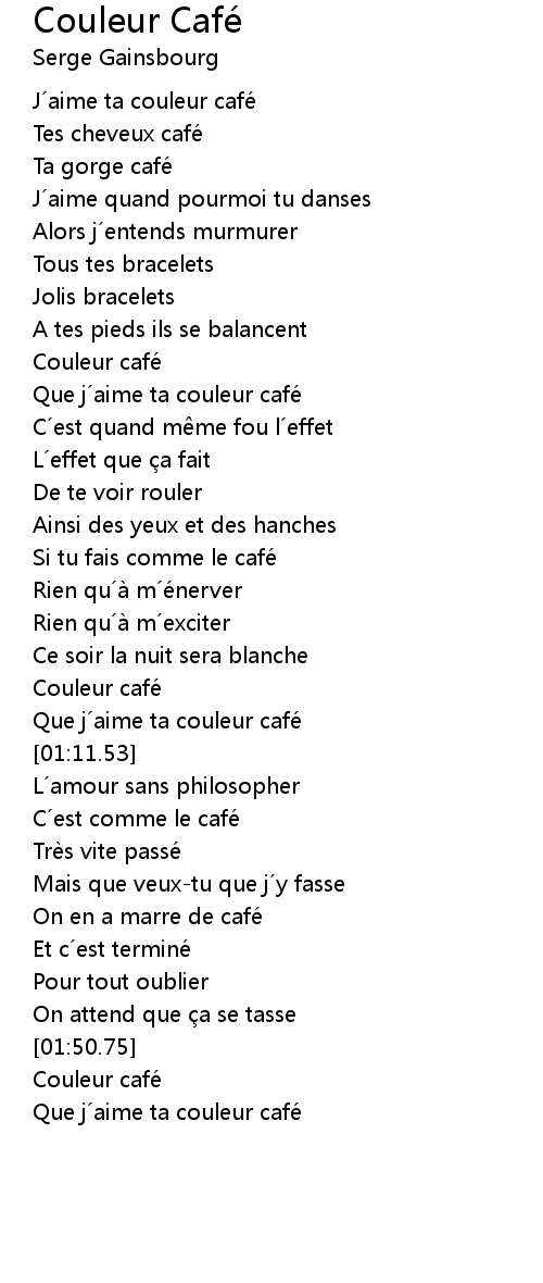 | [01:55.73] | Que j´aime ta couleur café |