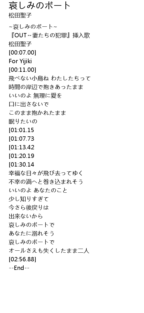 | [00:03.00] | 『OUT~妻たちの犯罪』挿入歌 |