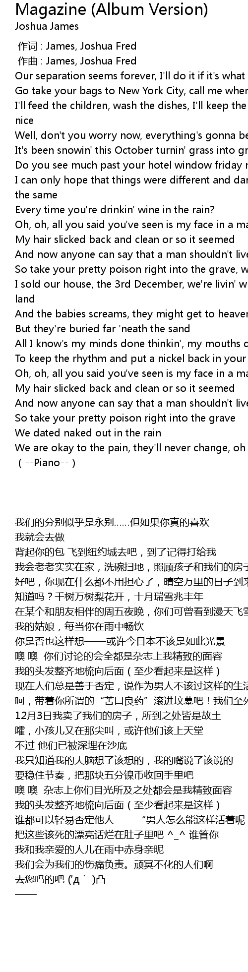 | [00:00.000] | 作词 : James, Joshua Fred |