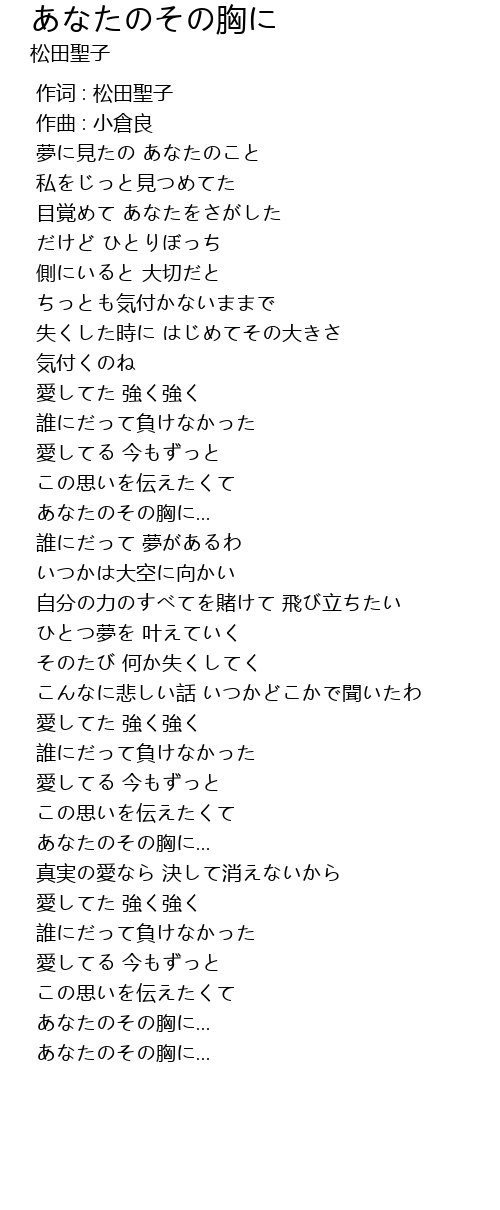 | [04:00.335] | あなたのその胸に... |
