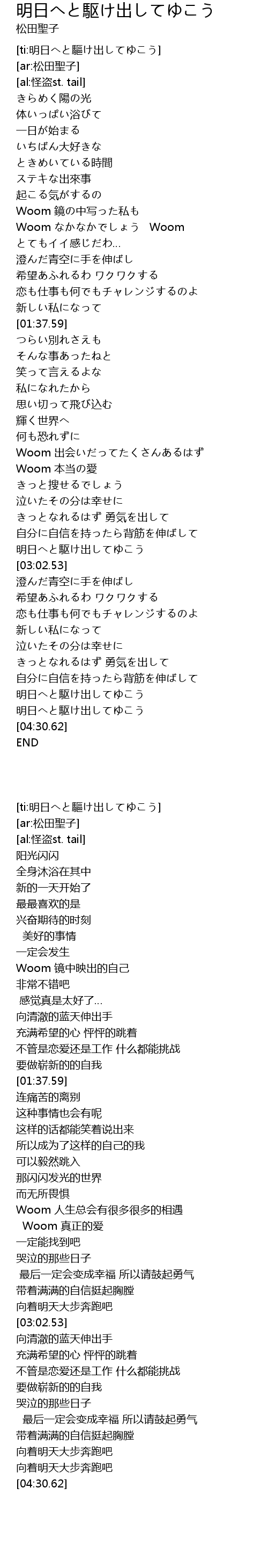| [04:23.72] | 明日へと駆け出してゆこう |