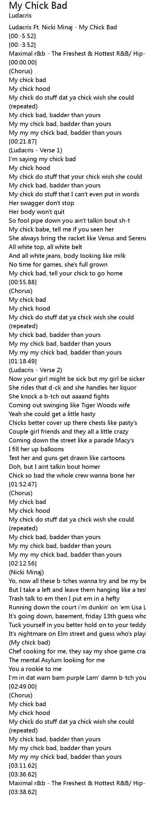 Ludacris Ft. Nicki Minaj - My Chick Bad |