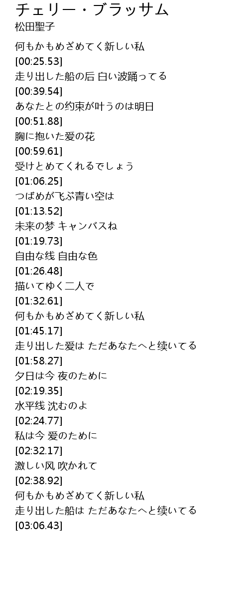| [00:27.25] | 走り出した船の后 白い波踊ってる |