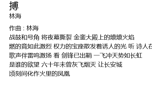 | 战鼓和号角 将夜幕撕裂 金銮大殿上的燎燎火焰 燃的竟如此激烈 权力的宝座散发着诱人的光 听 诗人在吟唱 歌声伴雷鸣激扬 看 剑锋已出鞘 一飞冲天势如长虹 是谁的欲望 六十年未曾灰飞烟灭 让长安城 顷刻间化作火里的凤凰 |