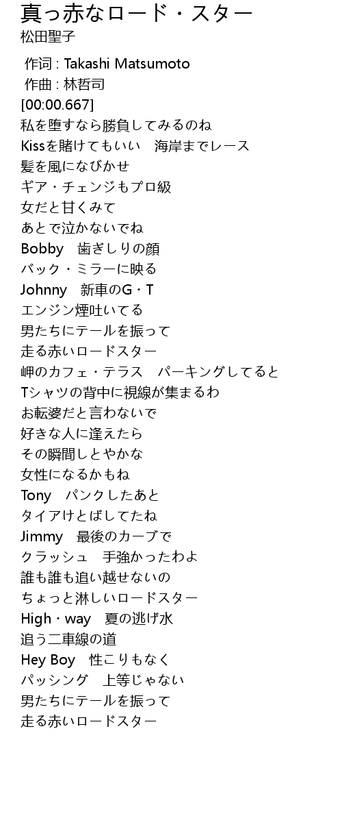 | [00:00.000] | zuò cí : Takashi Matsumoto |