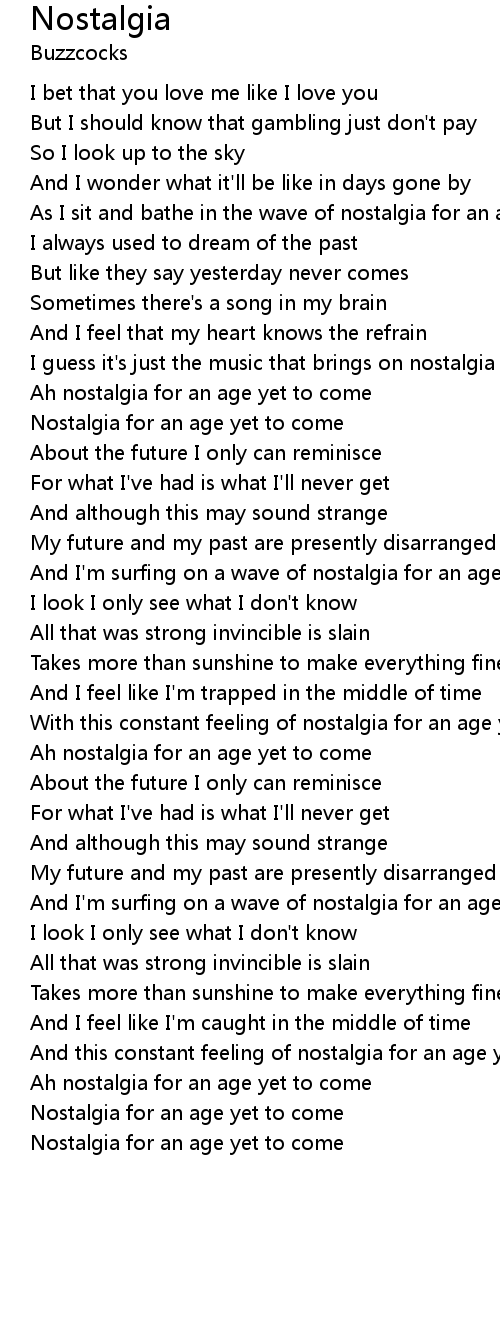 And I'm surfing on a wave of nostalgia for an age yet to come |