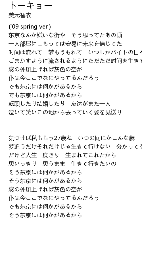 | 东京なんか嫌いな街や そう思ってたあの顷 | |