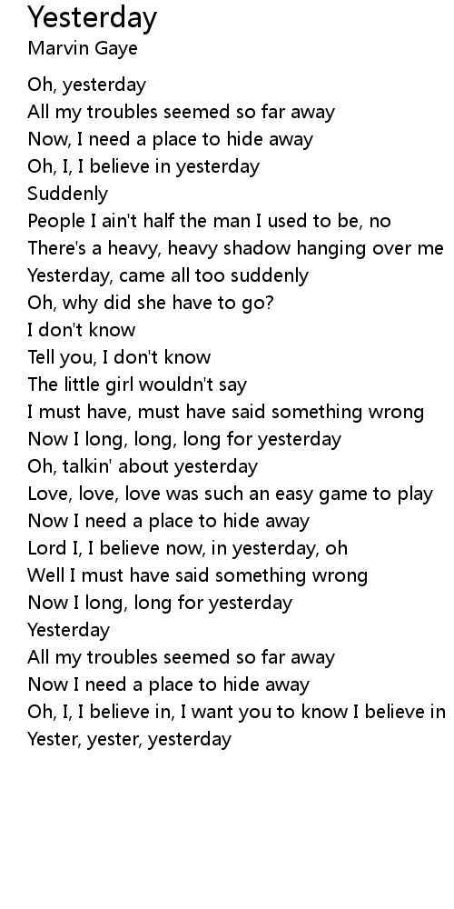 Yester, yester, yesterday |