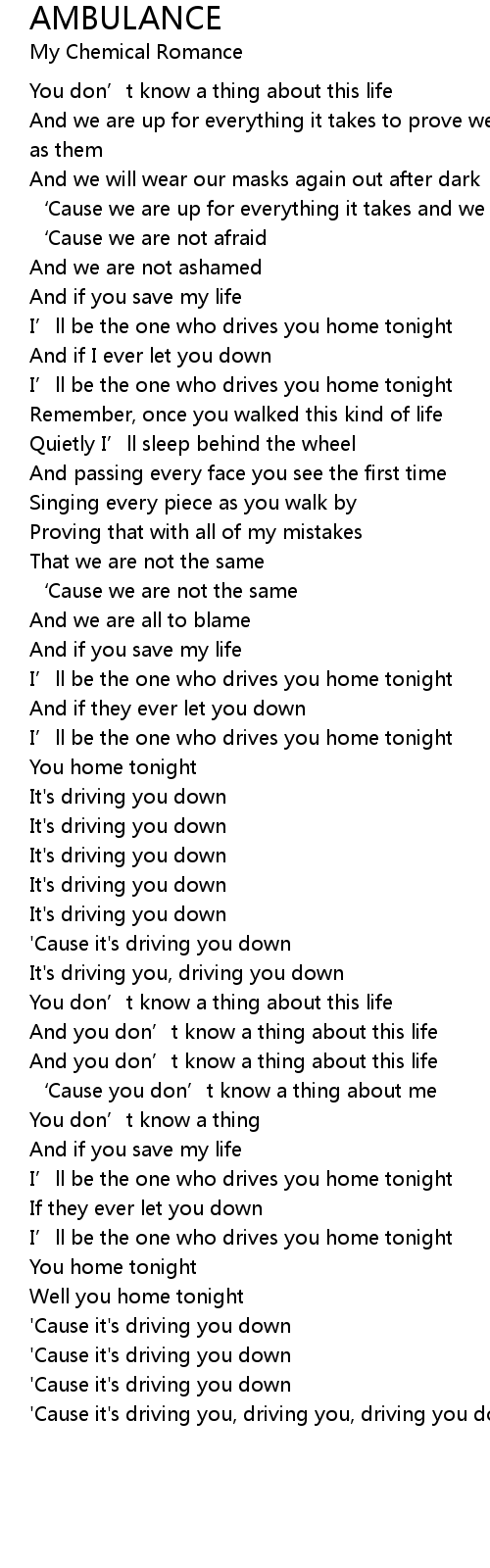 | [03:33.824] | 'Cause it's driving you, driving you, driving you down |
