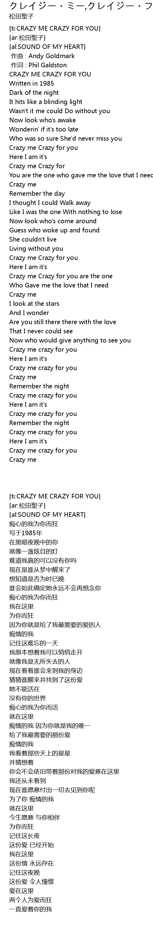 | [00:45.48] | Crazy me Crazy for you |