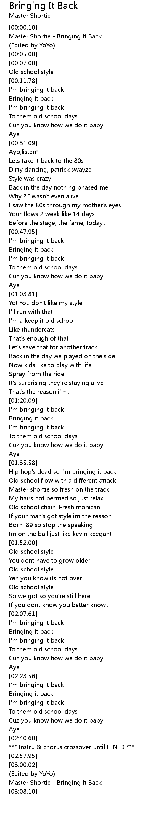 Master Shortie - Bringing It Back |