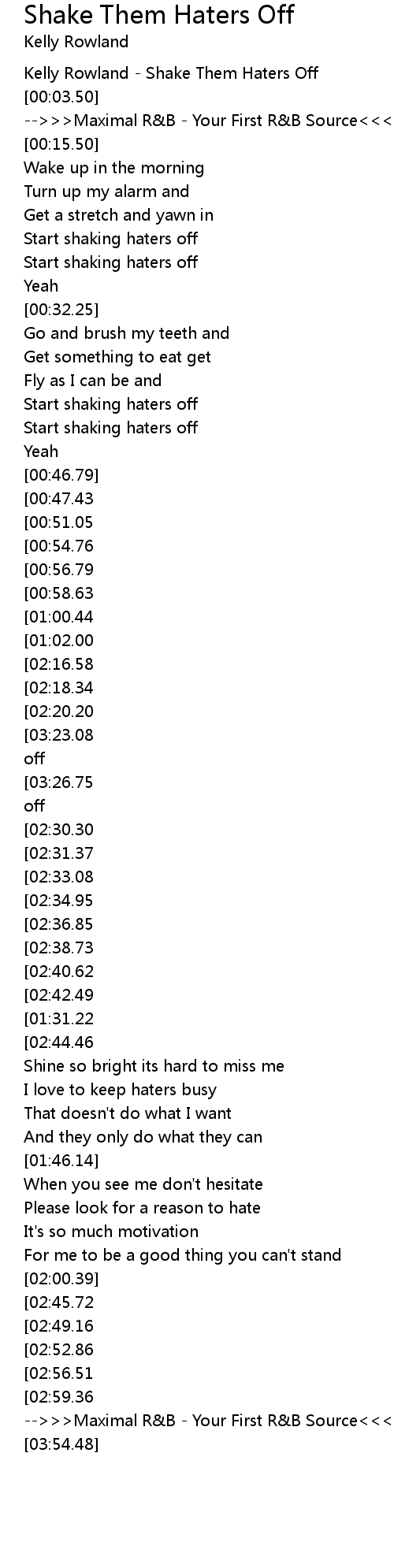 [00:00.50] Kelly Rowland - Shake Them Haters Off