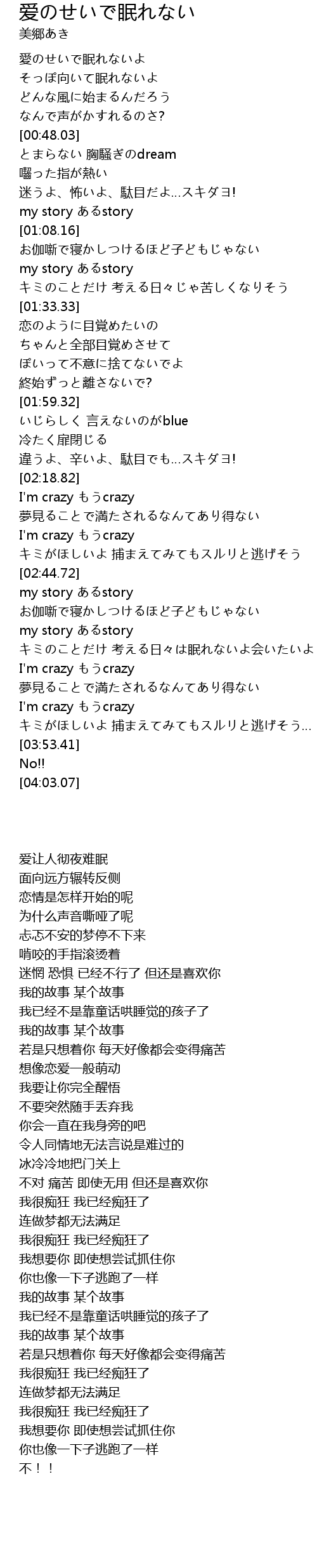 キミのことだけ 考える日々は眠れないよ会いたいよ |