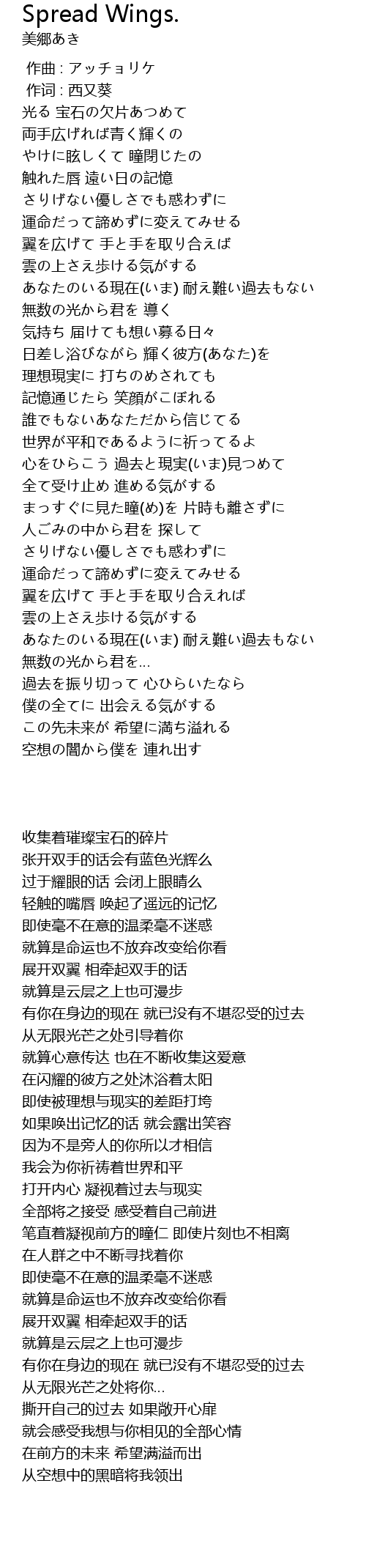 | [03:12.470] | 翼を広げて 手と手を取り合えれば |