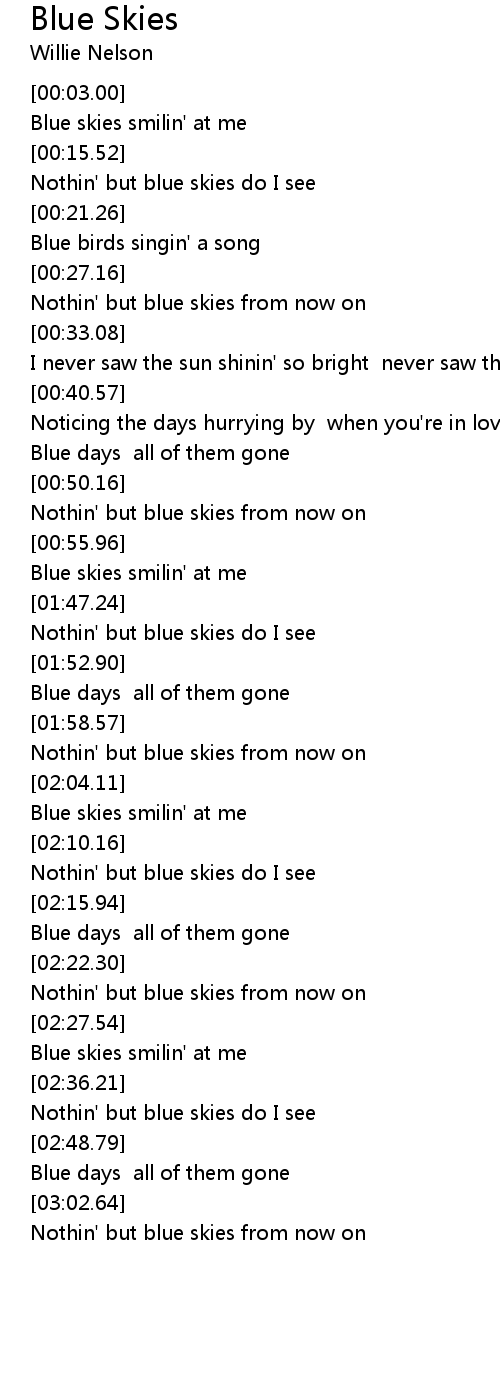 [02:12.04] Nothin' but blue skies do I see