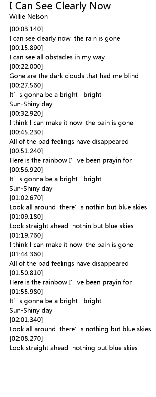 | [00:24.440] | Gone are the dark clouds that had me blind |