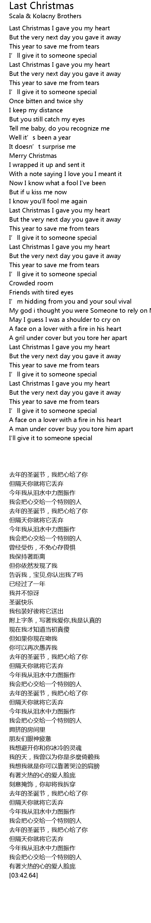 | [03:20.18] | Last Christmas I gave you my heart |