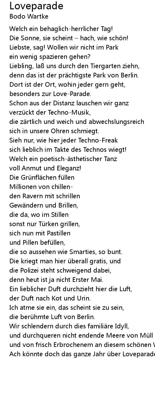 | Ach k nnte doch das ganze Jahr ü ber Loveparade sein! |
