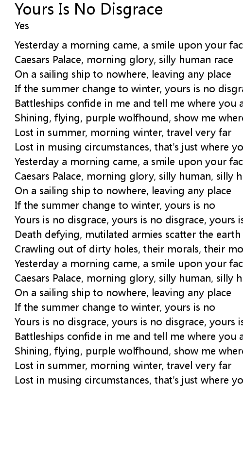 Yours is no disgrace, yours is no disgrace, yours is no disgrace |