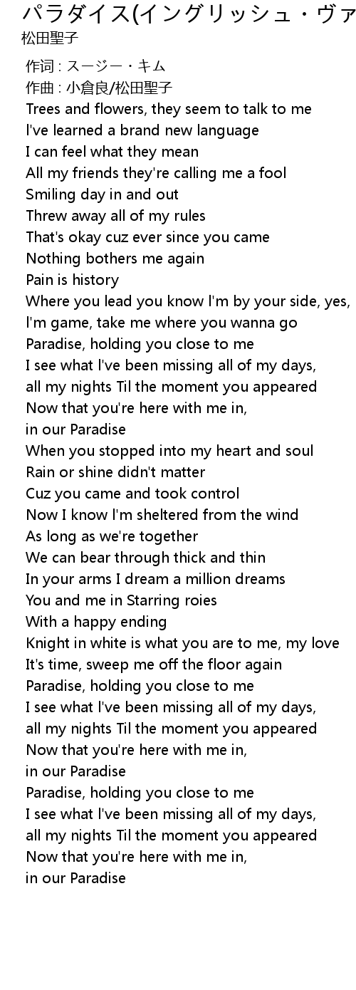 | Song | パラダイス(イングリッシュ・ヴァージョン) |