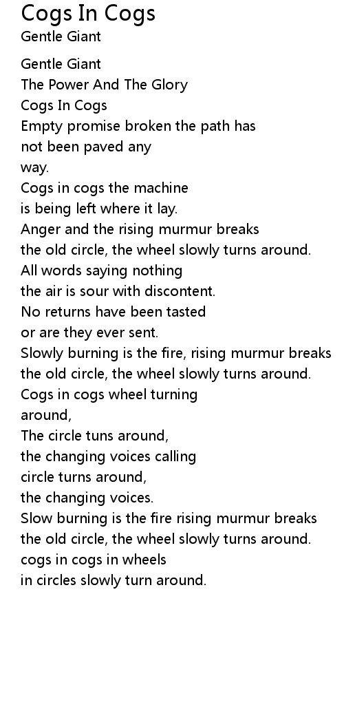 cogs in cogs in wheels |