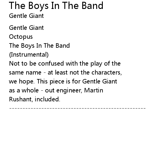| Song | The Boys In The Band |