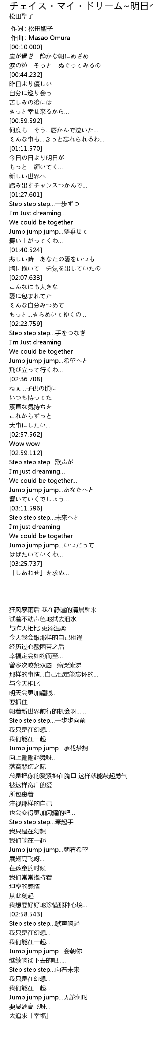 | [01:35.177] | Jump jump jump…夢乗せて |