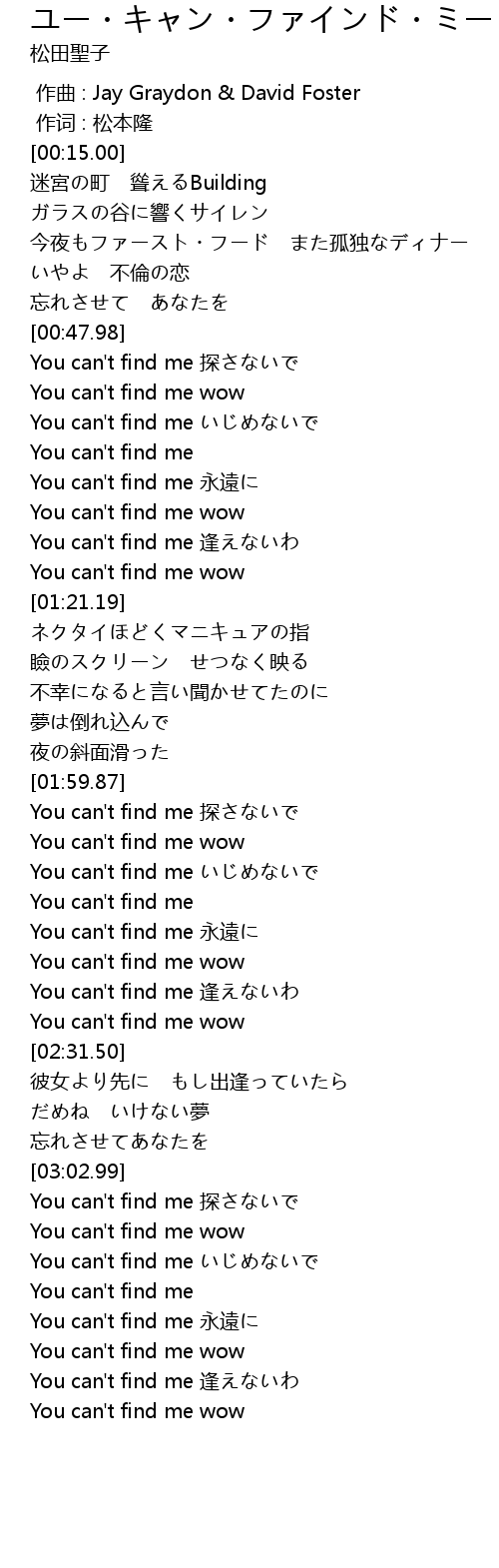 | [00:00.000] | 作曲 : Jay Graydon & David Foster |