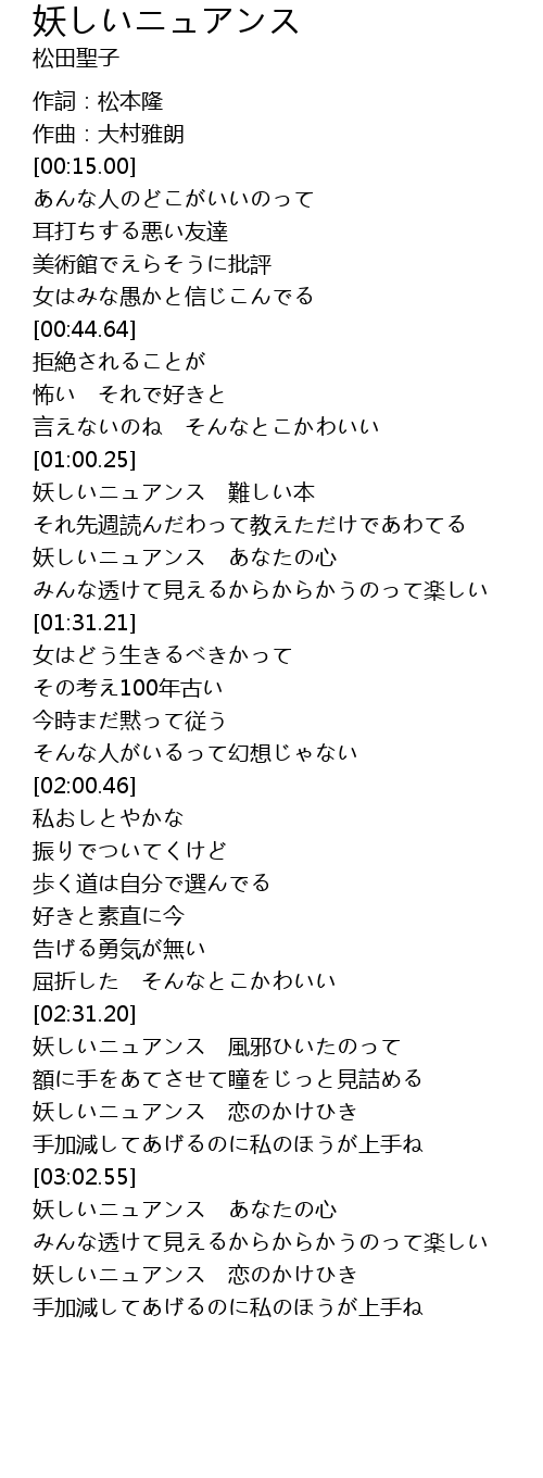 | [03:33.50] | 妖しいニュアンス あなたの心 |