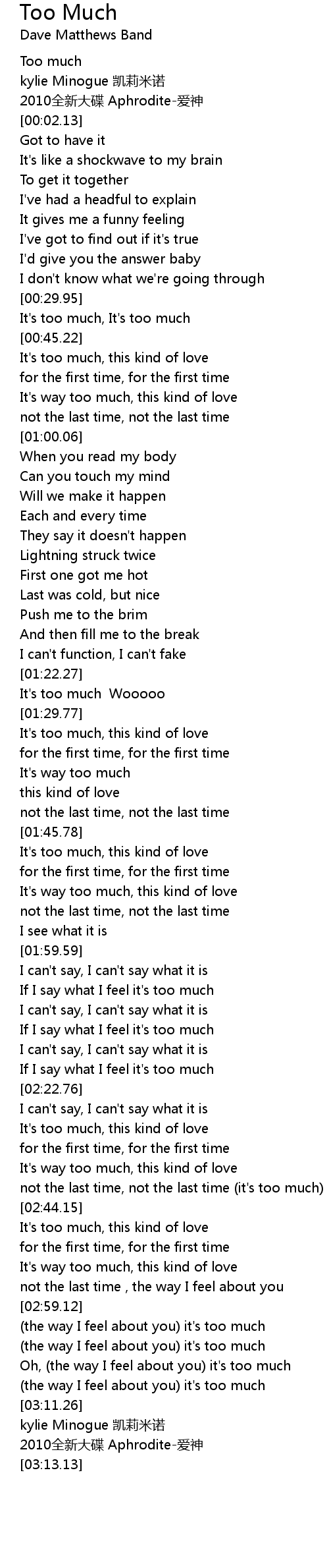 | [03:02.37] | (the way I feel about you) it's too much |