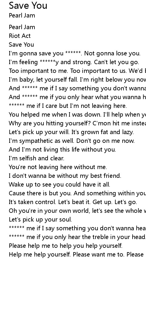 I'm gonna save you ******. Not gonna lose you. |