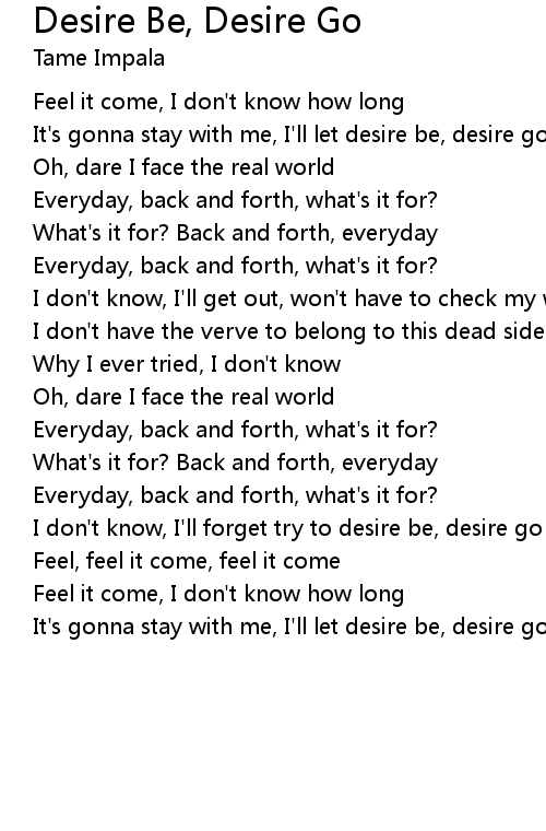 I don't know, I'll forget try to desire be, desire go |