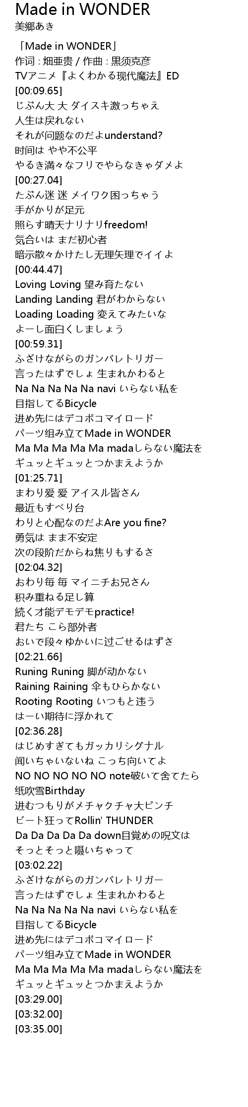 | [03:17.90] | パーツ组み立てMade in WONDER |