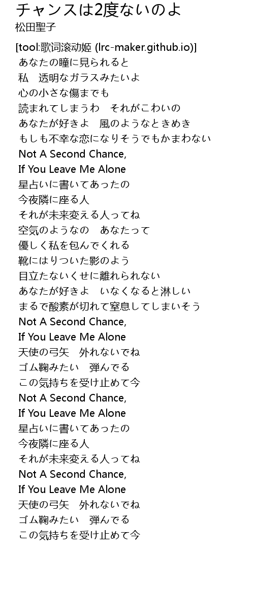 | [00:41.098] | 読まれてしまうわ それがこわいの |