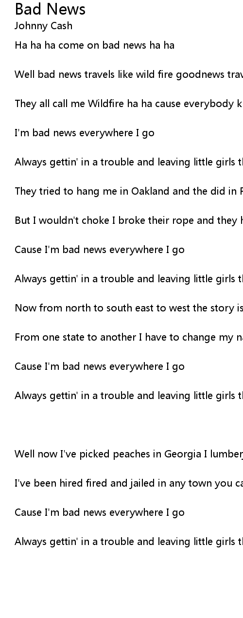 Cause I'm bad news everywhere I go |