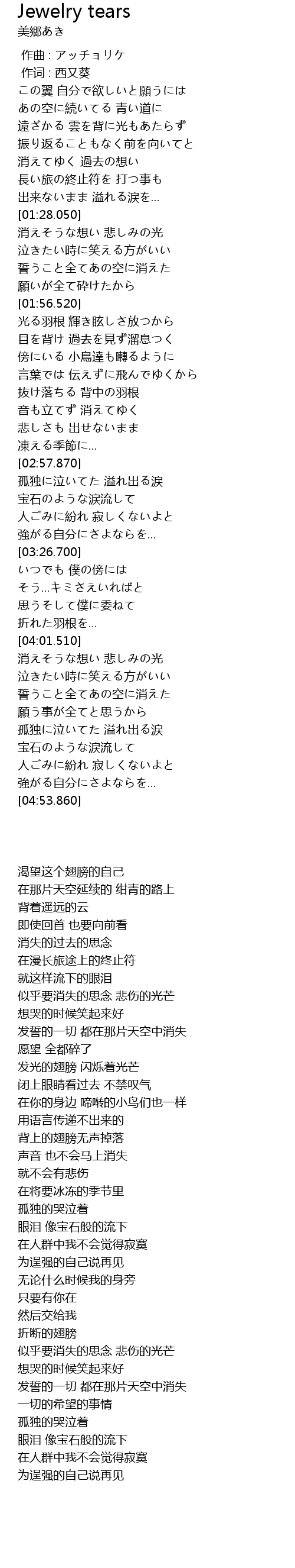 | [04:32.930] | 宝石のような涙流して |